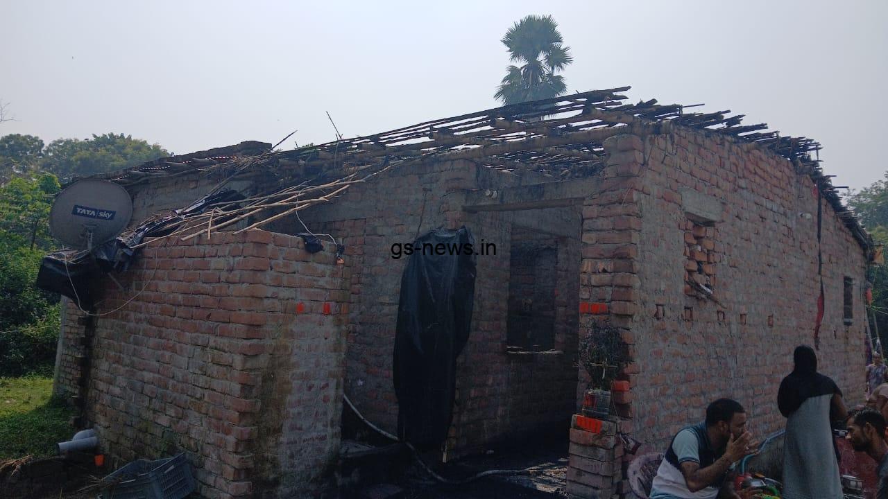 घटना के संबंध में पीड़ित मकान मालिक पिंटू कुमार गुप्ता ने बताया कि दीपावली की रात अज्ञात लोगों ने उनके झोपड़ीनुमा मकान पर बम फेंका, जिसके धमाके से घर में आग लग गई। आग इतनी तेजी से फैली कि घर में रखा सारा सामान जलकर राख हो गया। हालांकि, घर के लोग समय रहते बाहर निकल आए, जिससे बड़ी जनहानि टल गई।