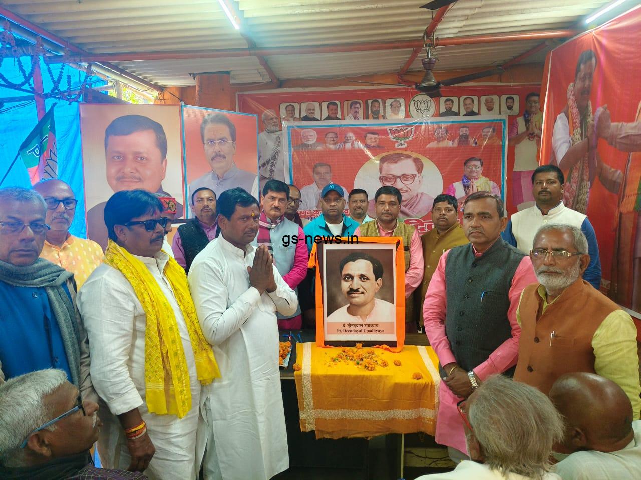 जिला एवं विभिन्न मंडलों से पहुंचे पार्टी पदाधिकारियों और कार्यकर्ताओं ने पंडित उपाध्याय के चित्र पर पुष्प अर्पित कर श्रद्धांजलि दी।
