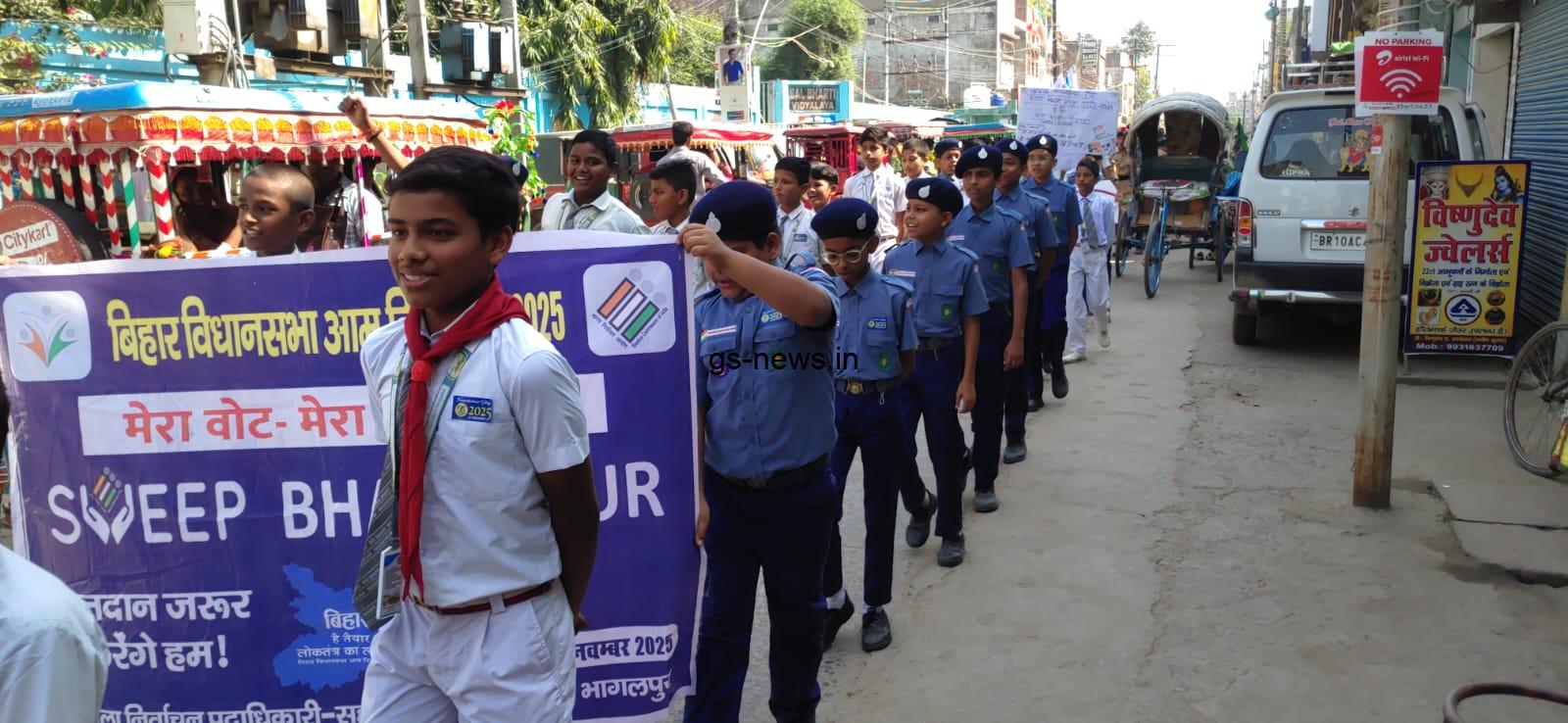 नवगछिया । आगामी बिहार विधानसभा चुनाव 2025 को लेकर मतदाताओं को जागरूक करने के उद्देश्य से शुक्रवार को बाल भारती विद्यालय एवं बाल भारती के संयुक्त तत्वावधान में मतदाता जागरूकता रैली निकाली गई। इस रैली में स्काउट एंड गाइड एवं एनसीसी के करीब 200 छात्र-छात्राओं ने उत्साहपूर्वक भाग लिया।