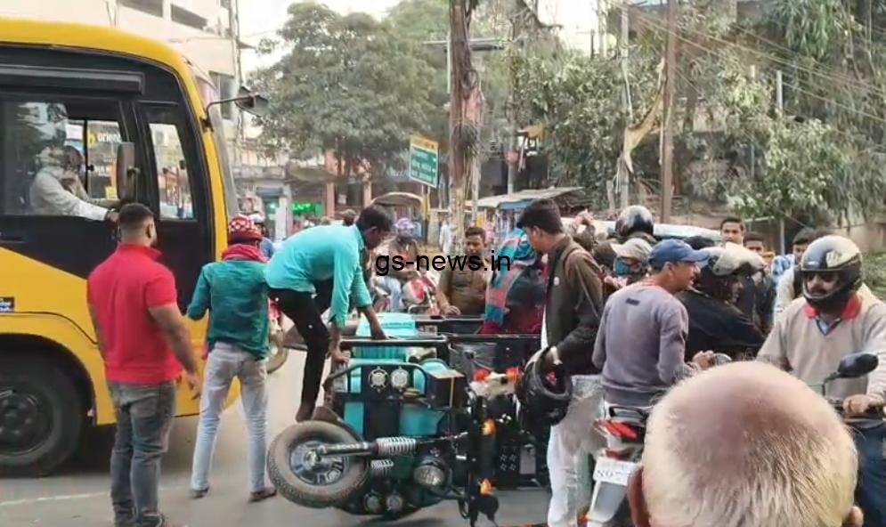 भागलपुर के व्यस्त कचहरी चौक पर एक स्कूली वाहन द्वारा टोटो को जोरदार टक्कर मारने की घटना सामने आई। प्रत्यक्षदर्शियों के अनुसार स्कूली वाहन तेज रफ्तार में था और अचानक सामने आए टोटो को उसने सीधी टक्कर मार दी। टक्कर इतनी जोरदार थी कि टोटो बुरी तरह क्षतिग्रस्त हो गया।
