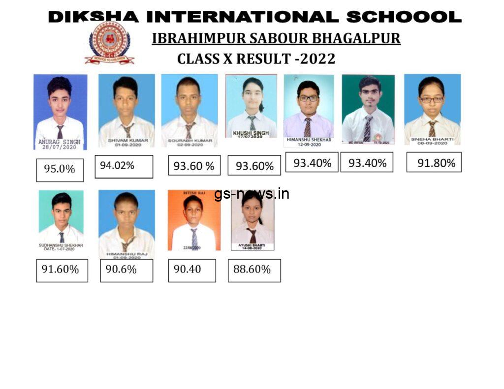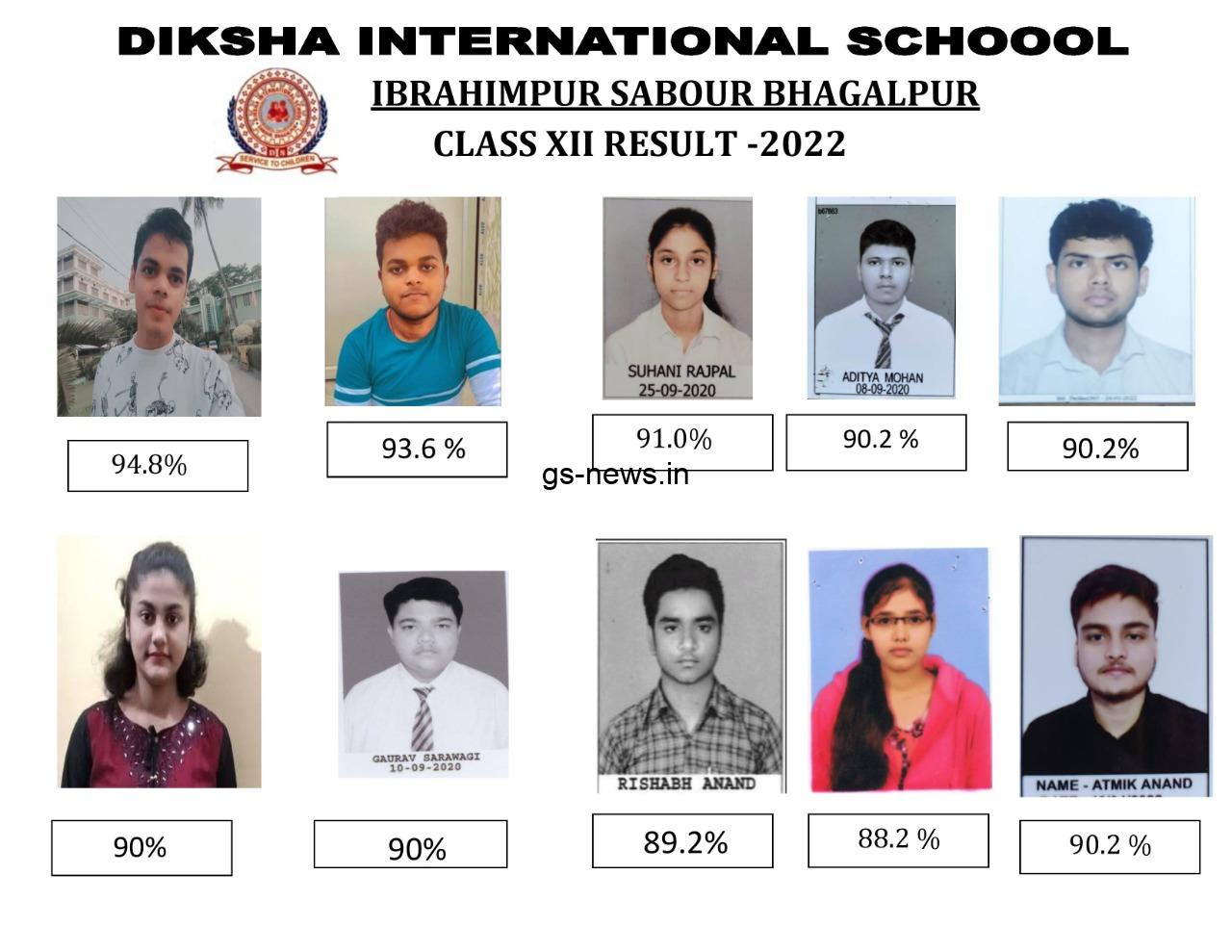 विदित हो कि दीक्षा के कुल 251 बच्चों ने 12वीं तथा 345 बच्चों ने परीक्षा दी थी जिसमे 195 बच्चों ने 12वीं में अच्छे अंकों के साथ सफलता का परचम लहराया एवम 10वीं में 343 बच्चों ने पूर्ण सफलता हासिल की। सर्वाधिक अंक पाने वाले 12वीं की छात्र छात्राएं हैं-नीतीश कुमार 95%, प्रियांशु कुमार-94 %, सुहानी राज- 91%, आदित्य मोहन – 90.2%, मुहम्मद अरसलान 90.2%, मुस्कान कुमारी 90%, गौरव सरावगी 90.2%, ऋषभ कुमार 89% सोनम 88.2%, आत्मिक आनंद 88% साथ ही 10वीं के बच्चे जिन्होंने विद्यालय में अधिकतम अंक पाया वे हैं – अनुराग सिंह- 95%, शिवम कुमार- 94.2%, खुशी कुमारी 93.6%, सौरभ कुमार 93.6%, मुहम्मद इरफान- 93.4% स्नेह भारती – 92%, सुधांशु शेखर- 91.6%, हिमांशु राज 91%, रितेश राज- 90.4%, आयुषी कुमारी – 88.6% सभी बच्चों के अभिभावकों ने दीक्षा परिवार की प्रशंसा की और कहा कि बच्चों के लगन और विद्यालय की अच्छी पढ़ाई के कारण ही हर वर्ष दीक्षा के बच्चे अच्छी सफलता प्राप्त कर रहे है। यही कारण है कि यह विद्यालय 10वीं एवम +2 के बच्चों की पहली पसंद बन चुका है।