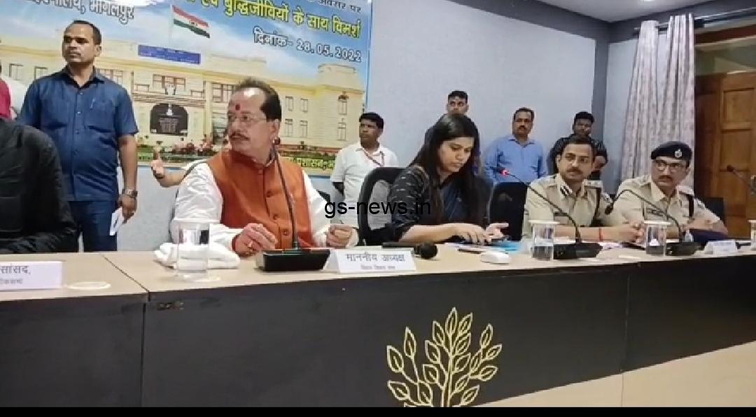 भागलपुर के समीक्षा भवन में बिहार विधानसभा अध्यक्ष विजय सिन्हा की अध्यक्षता में बुद्धिजीवियों, जनप्रतिनिधियों जिला व पुलिस प्रशासन के अधिकारियों के साथ बैठक आयोजित की गई। बैठक में जिले में चल रहे जल जीवन हरियाली, स्वच्छता अभियान , दहेज प्रथा , अभिभावक विहीन बच्चों के लिए सुविधा समेत कई मुद्दों पर विचार विमर्श किया गया।