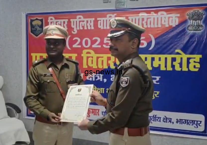 भागलपुर: बिहार पुलिस के वार्षिक पारितोषिक वितरण समारोह 2025–26 के तहत पूर्वी क्षेत्र भागलपुर के कुल 27 पुलिस पदाधिकारी एवं कर्मियों को सम्मानित किया गया। यह गरिमामय समारोह भागलपुर समाहरणालय स्थित समीक्षा भवन में आयोजित किया गया, जहां मुख्य अतिथि के रूप में महानिरीक्षक विवेक कुमार ने चयनित अधिकारियों को प्रशस्ति पत्र प्रदान कर सम्मानित किया।
