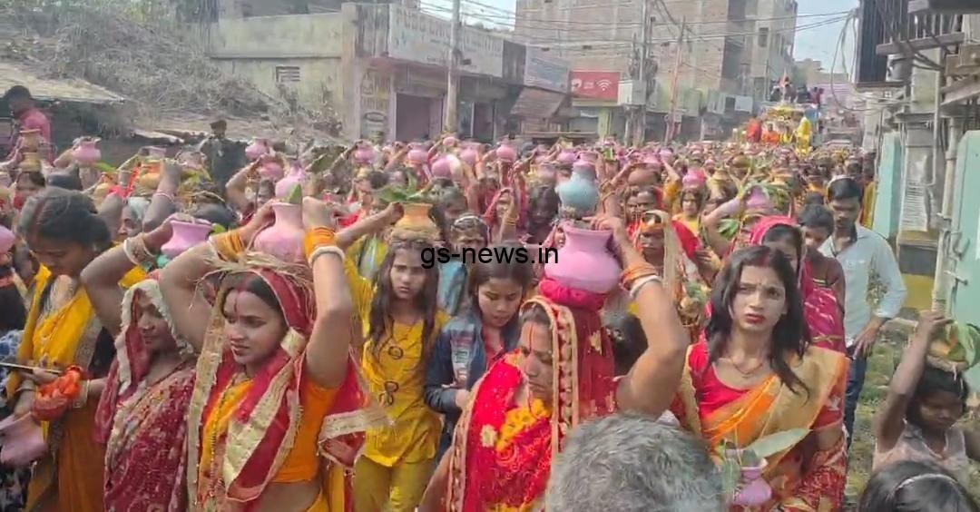 भागलपुर। श्रीमद्भागवत कथा के आयोजन को लेकर भागलपुर के महादेव तालाब, कुतुबगंज से शनिवार को भव्य कलश शोभा यात्रा निकाली गई। इस शोभा यात्रा में हजारों की संख्या में श्रद्धालु महिलाएं अपने माथे पर कलश लेकर शामिल हुईं। डीजे पर बज रही भक्तिमय धुनों और जयघोष के बीच महिलाएं झूमती-नाचती रहीं, जिससे पूरा क्षेत्र भक्ति के माहौल में सराबोर हो गया।