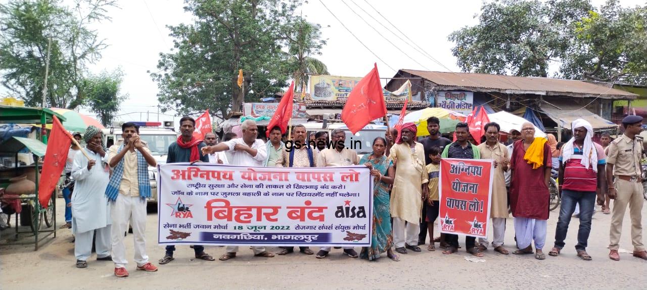 इसे स्वीकार करना कैसे संभव है. सरकार के इस अड़ियल व गैर जिम्मेदाराना रवैये के खिलाफ आइसा-इनौस के द्वारा आज बिहार बंद किया गया है. जिसे भाकपा माले ने समर्थन दिया है. इंकलाबी नौजवान सभा के राज्य सह सचिव गौरीशंकर राय ने कहा कि यदि सरकार राष्ट्रीय सुरक्षा से खिलवाड़ और युवाओं का मजाक उड़ाने वाली इस योजना को वापस नहीं लेती, तो भारत बंद की ओर कदम बढ़ाया जाएगा.