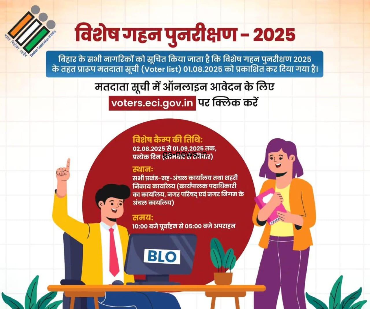 निर्वाचक सूची में नाम जोड़ने, विलोपित करने या संशोधन संबंधी दावा एवं आपत्ति दर्ज करने की अंतिम तिथि 1 सितंबर 2025 निर्धारित की गई है।