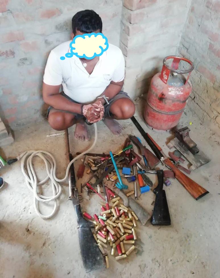 इसके बाद भागलपुर पुलिस से जानकारी साझा करते हुए भागलपुर पुलिस और मुंगेर पुलिस के आसूचना इकाई की टीम ने पन्नू चक में छापेमारी की। जहां से पुलिस को 69 बंदूक का कारतूस, 01 एकनाली बन्दूक, 01 दोनाली बन्दूक, 01 देसी कट्टा, 03 बन्दूक का बट, 20 पंच मार्कर सहित हथियार बनाने के भारी मात्रा में औज़ार को बरामद किया गया।