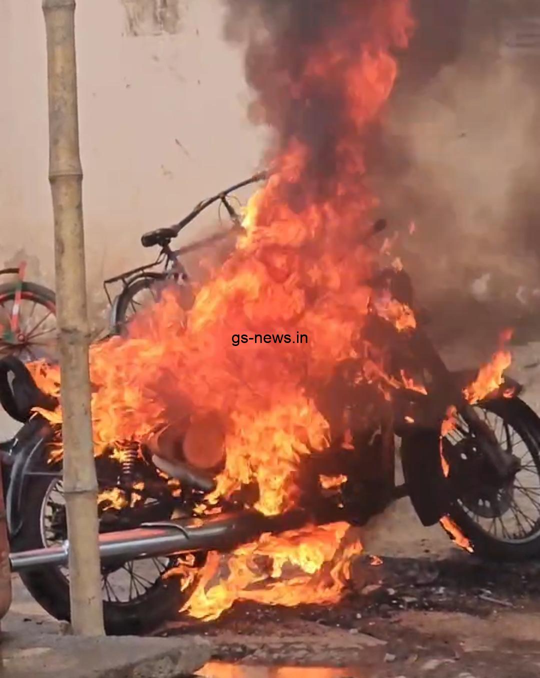 देखते ही देखते आग तेजी से फैल गई और कुछ ही मिनटों में पूरी मोटरसाइकिल जलकर राख हो गई। घटना के बाद कुछ समय के लिए इलाके में अफरा-तफरी का माहौल बन गया।