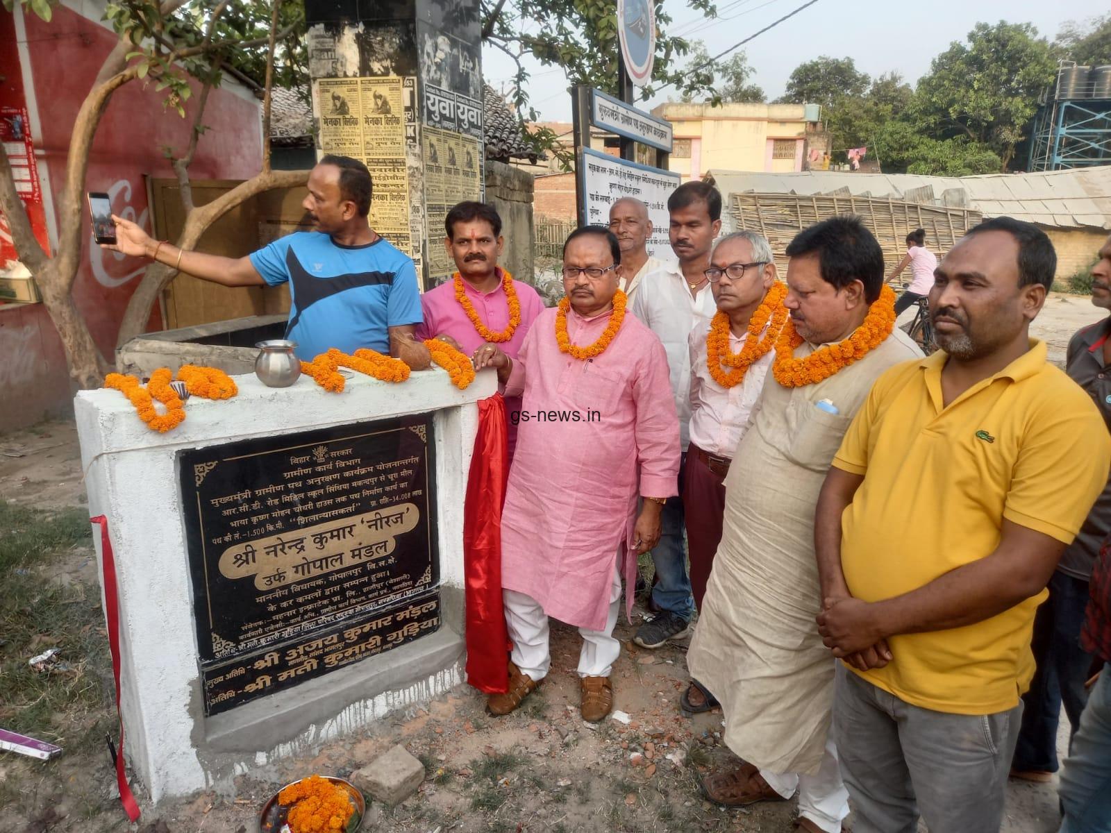नवगछिया के गोपालपुर विधानसभा के विधायक नरेंद्र कुमार नीरज उर्फ गोपाल मंडल ने विधानसभा क्षेत्र में करोड़ों रुपये की लागत वाले छः सड़कों का शिलान्यास शुक्रवार को किया है. 46.588 लाख की लागत से आरसीडी रोड नियर हाईस्कूल लत्तरा से मिडिल स्कूल तक 1.430 किलोमीटर सड़क, 43.232 लाख की लागत से एनएच 31 से आरसीडी रोड भाया मिडिल स्कूल हरनाथचक 1.200 किलोमीटर सड़क, 34.008 लाख की लागत से आरसीडी रोड मिडिल स्कूल सिंधिया मकंदपुर से चूरा मिल भाया कृष्णमोहन चौधरी हाउस 1.500 किलोमीटर सड़क,