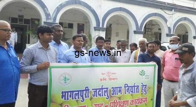 भागलपुर, कृषि विभाग बिहार सरकार के द्वारा जर्दालू आम निर्यात हेतु परिभ्रमण प्रशिक्षण कार्यक्रम के तहत राज्य के बाहर केंद्रीय उपोषण बगवानी संस्थान लखनऊ उत्तर प्रदेश के लिए 10 किसान व दो अधिकारी रवाना हुए। यह आयोजन कृषि प्रौद्योगिकी प्रबंध अभिकरण (आत्मा) के द्वारा किया जा रहा है। इन किसानों को जिलाधिकारी सुब्रत कुमार सेन ने डीएम कार्यालय परिसर से हरी झंडी दिखाकर रवाना किया। जिलाधिकारी सुब्रत कुमार सेन ने मीडिया से बात करते हुए कहा की कतरनी चूड़ा और चावल के बाद जर्दालू आम को भी जीआई टैग मिल गया है।