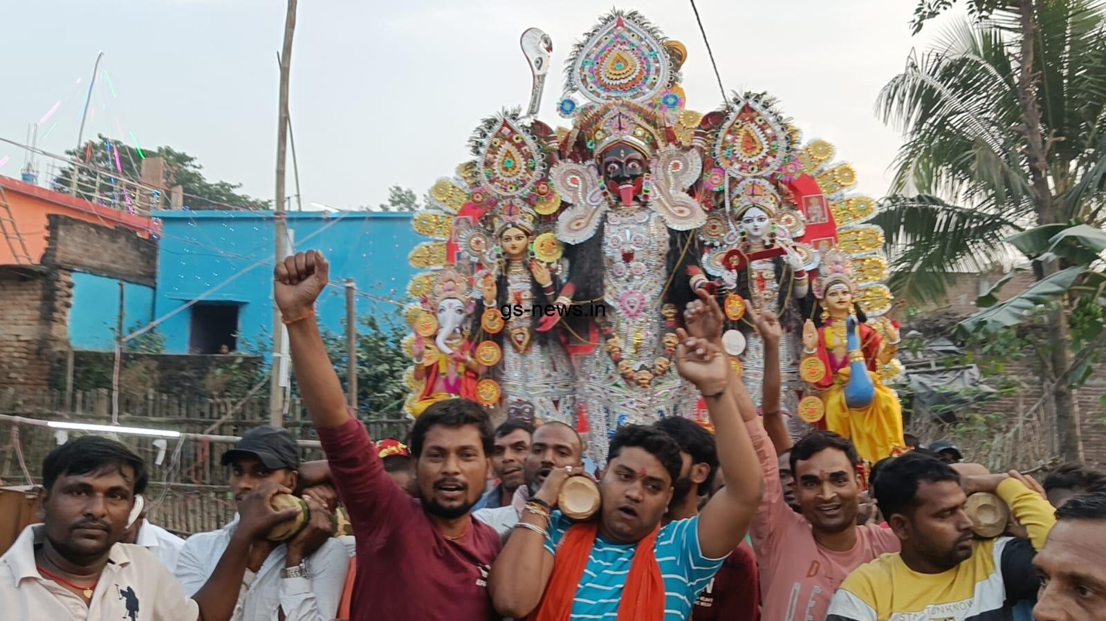 वहीं मंगलवार की संध्या मां कालिका की प्रतिमा को नव युवकों ने अपने कंधे पर लेकर गांव में भ्रमण करवाया इसके बाद स्थानीय गोसाईगांव गंगा घाट पर प्रतिमा का शांतिपूर्ण विसर्जन कर दिया । मौके पर हजारों की भीड़ उमड़ पड़ी थी काली मैया की जय, जयघोष से पूरा क्षेत्र गुंजायमान हो गया था । वहीं हरिपुर टोला में काली पूजा समारोह शांतिपूर्ण संपन्न कराने को लेकर समस्त ग्रामीणों की भागीदारी एवं सैकड़ों की मौजूदगी रही ।