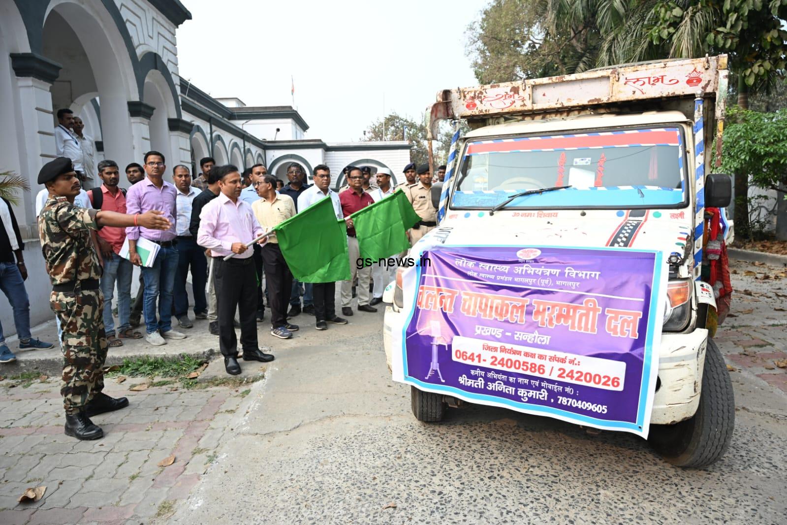 भागलपुर । सोमवार को समाहरणालय परिसर से जिलाधिकारी डॉ. नवल किशोर चौधरी ने हरी झंडी दिखाकर लोक स्वास्थ्य अभियंत्रण विभाग के पूर्वी और पश्चिमी प्रमंडल के कुल 17 चापाकल मरम्मति दलों को जिले के विभिन्न प्रखंडों के लिए रवाना किया।