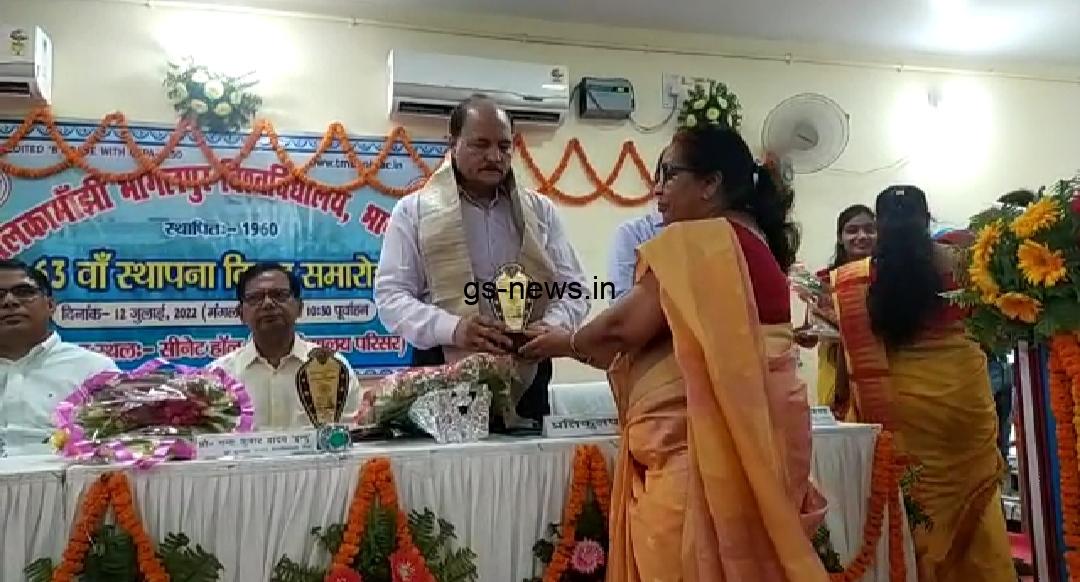 भागलपुर।तिलकामांझी भागलपुर विश्वविद्यालय का 63 वां स्थापना दिवस समारोह आज सीनेट हॉल में धूमधाम से मनाया गया। वैश्विक महामारी कोरोना के चलते विश्वविद्यालय का स्थापना दिवस 2 साल से वृहत स्तर पर नहीं मनाया जा रहा था। इस बार 2 साल बाद फिर से विश्वविद्यालय का 63 वां स्थापना दिवस मनाया गया।भागलपुर प्रमंडल के आयुक्त दया निधान पाण्डेय कार्यक्रम के मुख्य अतिथि थे ।जबकि टीएमबीयू के पूर्व कुलपति प्रो. क्षमेंद्र कुमार सिंह और केंद्रीय विश्वविद्यालय रांची के पूर्व वीसी प्रो. नन्द कुमार यादव इंदु को विशिष्ट अतिथि के रूप में समारोह में उपस्थित थे।
