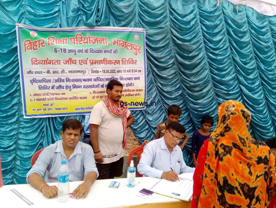 नारायणपुर : प्रखंड के बीआरसी भवन में शनिवार को दिव्यांग बच्चों को प्रमाण पत्र एवं यूडीआईडी कार्ड बनाने को लेकर शिविर आयोजित हुआ. बिहार शिक्षा परियोजना सर्व शिक्षा अभियान भागलपुर के मार्गदर्शन में कार्यक्रम का संचालन किया गया. शिविर में कुल 85 बच्चों और अभिभावक ने भाग लिया.जिसमें सभी बच्चों को यूडीआईडी पोर्टल पर ऑनलाइन कर के जांच डाॅक्टर गोपाल कुमार और चक्रधर के द्वारा कर प्रमाण पत्र बनाया गया.
