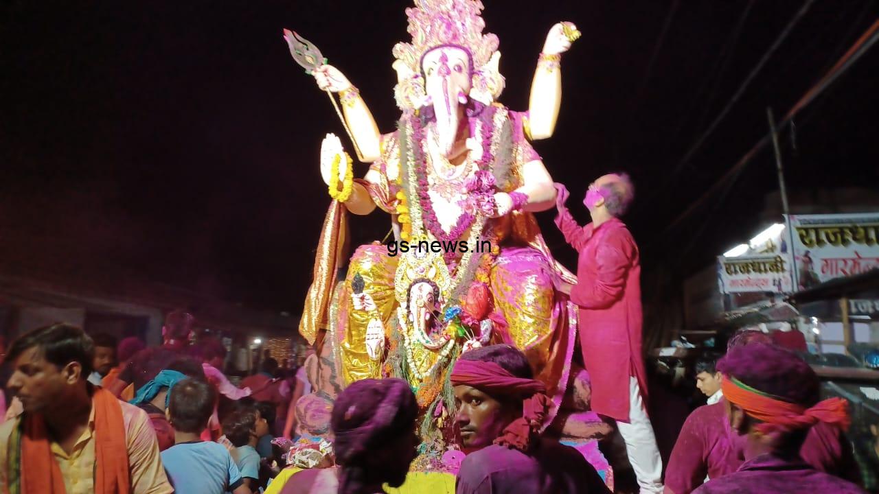 गणेश जी की प्रतिमा को नगर भ्रमण कराते गाजे बाजे और डीजे की धुन पर अविर के साथ युवा धीरकते नजर आये वही किमिटी से रवि शर्मा ने बताया कि शहर के गौशाला के परिसर में स्थित पोखर में नम आँखों से भगवान गणेश जी को अंतिम विदाई दी गयी. इस अवसर पर आयोजक रमेश चिराणिया, कोषाध्यक्ष अमित चिरानिया, शम्भू चिरानिया, दिनेश केडिया, रवि शर्मा, पंकज टीव्रेवाल, अतन सिंह, रतन सिंह, चंद्रशेखर शर्मा, प्रियम मवांडिया, मोहन पोद्दार के साथ सेकडो लोगो ने भाग लिया.