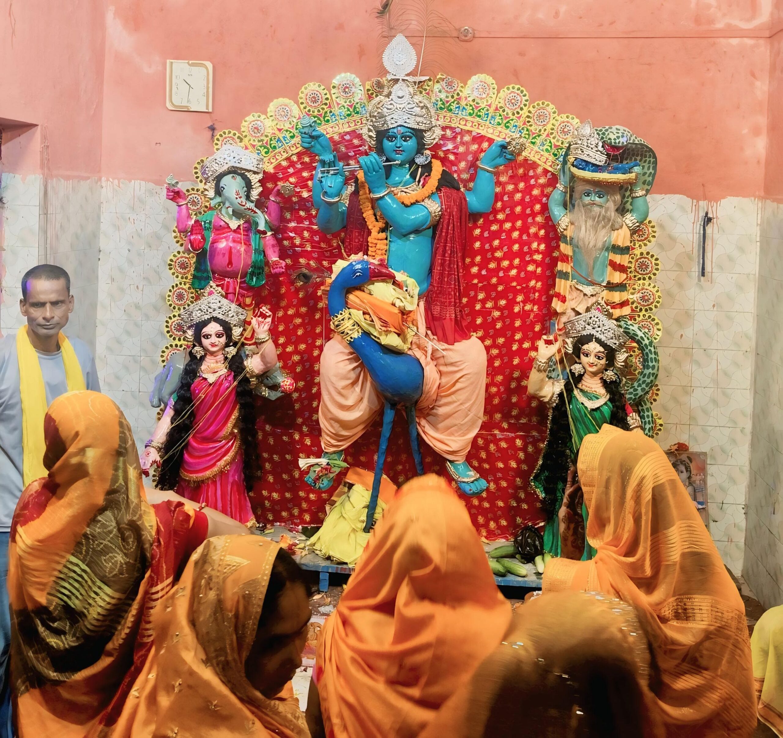 वही मौके पर स्थानीय ग्रामीण कलाकारों द्वारा मौके पर कार्यक्रम का आयोजन किया जा रहा था । वहीं इस दरबार में माता द्वारा सच्चे मन से मांगने पर भगवान स्वयं उनके गोद में खेलनें बालक स्वरूप जरूर आ आते हैं मन्नत पूरी होनें पर माता द्वारा बाँसुली भगवान को चढ़ाया जाता हैं । बताते चलें कि भगवान श्री कृष्ण लला का जन्मोत्सव शनिवार की रात्रि होनें के बाद कान्हा एवं राधा रूपेण नन्हें बच्चों द्वारा 11 केक काटकर जन्मोत्सव मनाया गया । जिसमें गाँव के सैकड़ों लोग शामिल हुए । वहीं आज 17 अगस्त रविवार को दिनभर भगवान का दर्शन करने हेतु भक्तों के लिए दरबार खुला रहेगा । संध्या भजन कीर्तन का आयोजन होगा । इसके बाद 18 अगस्त सोमवार को संध्या स्थानीय गोसाईगांव गंगा घाट पर प्रतिमा का विसर्जन किया जाएगा ।