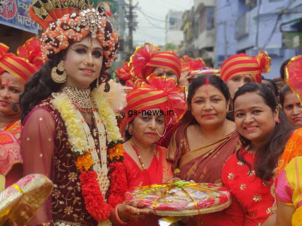 नवगछिया – सांवरिया सरकार नवगछिया द्वारा पंचम श्री श्याम वार्षिक महोत्सव के द्वितीय दिन मारवाड़ी विवाह भवन से बड़ी धूमधाम से गाजे बाजे ढोल नगाड़े नृत्य नाटिका के साथ महा छप्पन भोग यात्रा निकाली गई जो धर्मशाला से निकलकर मेन रोड होते हुए दुर्गा मंदिर रोड होते हुए नृत्य नाटिकाओं के साथ नृत करते हुए बड़ी घाट ठाकुरबाड़ी पहुंची जहां पर छप्पन भोग लिए महिलाओं ने अपना 56 भोग बाबा को अर्पित किया उसके बाद छलिया का भेष बनाया श्याम चूड़ी बेचने आया भजन पर सभी महिलाओं ने नित्य नाटिका के संग नृत्य किया पूरा नवगछिया बाजार श्याम भक्ति में.