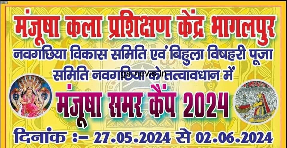 मंजूषा समर कैंप 2024 का आयोजन 27 मई से 2 जून तक नवगछिया के कुम्हार पट्टी स्थित एक विद्यालय के प्रांगण में होगा। इस कैंप में राष्ट्रीय स्तर के मंजूषा कलाकार अश्विनी आनंद और नवगछिया की मंजूषा कलाकार खुशी श्री प्रशिक्षण देंगे।