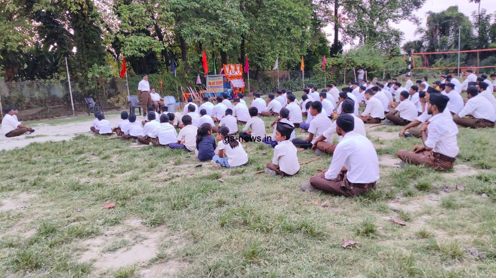 माननीय जिला संघचालक विनोद केजरीवाल ने बताया कि संघ की स्थापना 1925 में विजयादशमी के दिन हुई थी और 2025 में विजयादशमी के अवसर पर संघ ने शताब्दी वर्ष पूरा कर लिया है। इस अवसर पर विद्यालय परिसर से एक भव्य पथ संचलन निकाला गया, जो नगर के विभिन्न मार्गों से होते हुए पुनः विद्यालय परिसर में संपन्न हुआ। संचलन में लगभग 200 स्वयंसेवकों ने पूर्ण गणवेश में सहभागिता की।