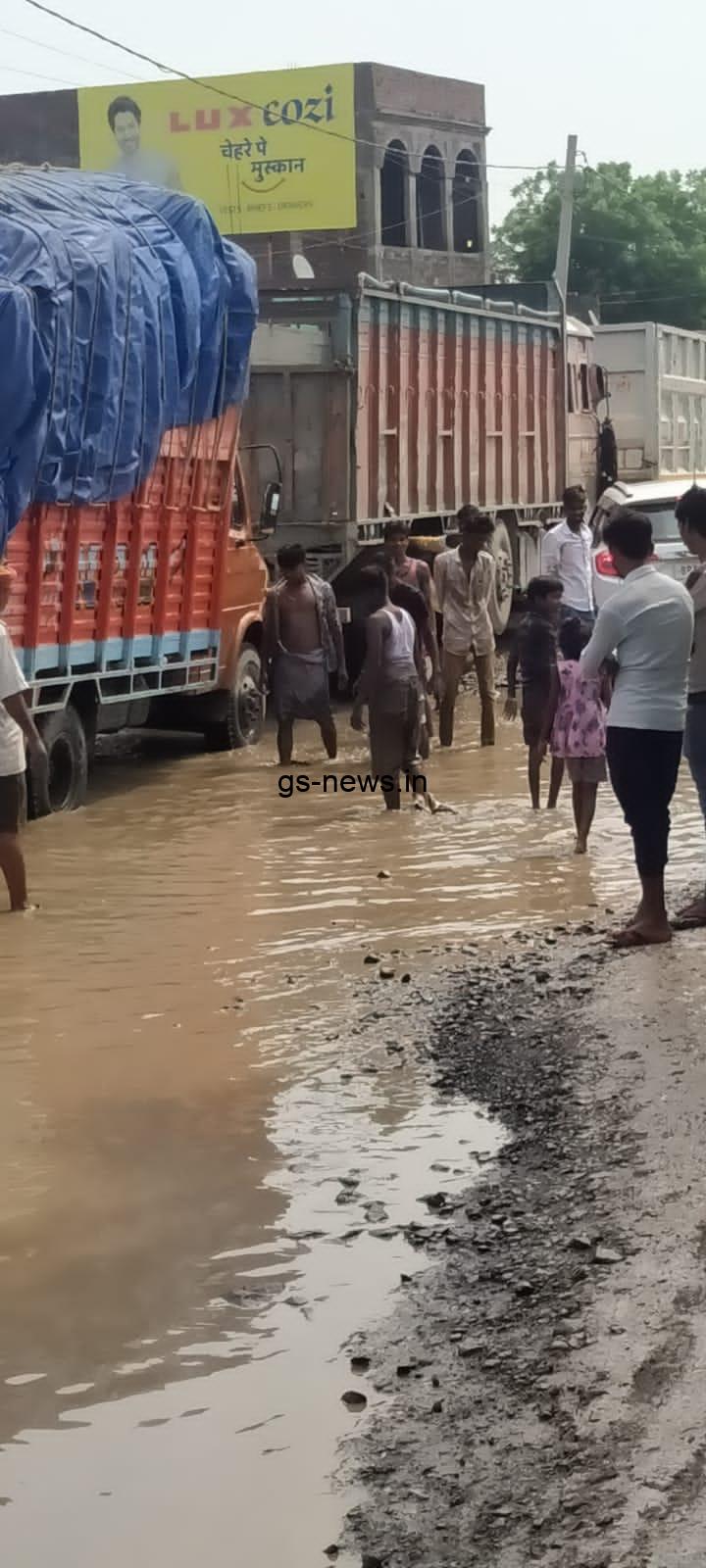 कई मछलियां ट्रक के जोड़े चक्के के बीच फंसे रहे जिसे आसानी लोग हाथों से पकड रहे थे। कुछ बच्चे मशहरी को जाल के रूप में प्रयोग कर मछली पकड़ रहे थे तो कुछ लुंगी को जाल रूप में प्रयोग कर रहे थे। उस वक्त का दृश्य काफी रोचक लग रहा था क्योकि बिना कुछ कहे सिस्टम के रवैये पर एक गहरी चोट पड़ रही थी। लोग सरकार व नेता पर तंज कसने से भी नही चूक रहे थे क्योकि वर्तमान जेडीयू सांसद अजय कुमार का पैतृक गॉव भी वहीं था। कुल मिलाकर नजारा कम पानी के बड़े तलाब में मछली पकड़ने की स्थित को दर्शा रहा था। उबड़ खाबड़ गड्ढे में वर्षा का पानी भरा होने से लोगों सो अक्सर धोखा होता है कई लोग इस गड्ढे में गिरते पछड़ते है ।