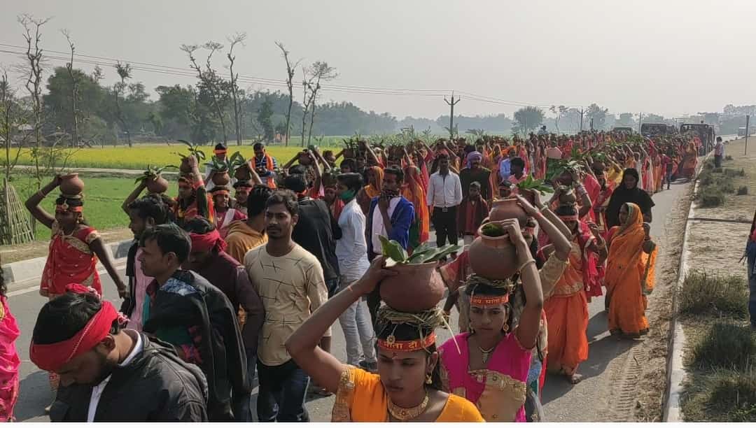 इससे पहले करीब 300 कन्याओं द्वारा बाबा बिशु राउत पुल समीप कोसी नदी में जल भरकर कलश शोभायात्रा निकाली गई. जो फोरलेन सड़क होते हुए मंदिर परिसर पहुंचे. वहीं रामध्वनी संकीर्तन में सोनामुखी अठगामां, नट्टापार, खैरपुर शर्मा टोला व चांय टोला के मंडली शामिल हैं.