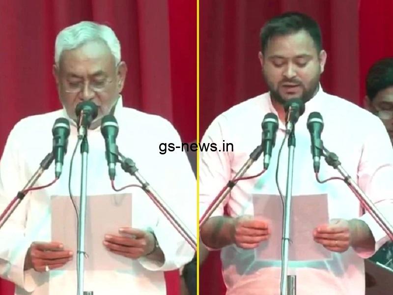 बिहार में आज बुधवार को नीतीश कुमार ने महागठबंधन की नई सरकार के मुख्यमंत्री तो तेजस्वी यादव ने उपमुख्यमंत्री के रूप में शपथ किया। राज्यपाल फागू चौहान ने बुधवार को दोपहर दो बजे उन्हें शपथ दिलाई। भारतीय जनता पार्टी शपथ ग्रहण समारोह से दूर है। बीजेपी ने नीतीश कुमार के राष्ट्रीय जनतांत्रिक गठबंधन छोड़ने को विश्वासघात बताते हुए इसके खिलाफ सभी जिला मुख्यालयों में धरना-प्रदर्शन किया है।