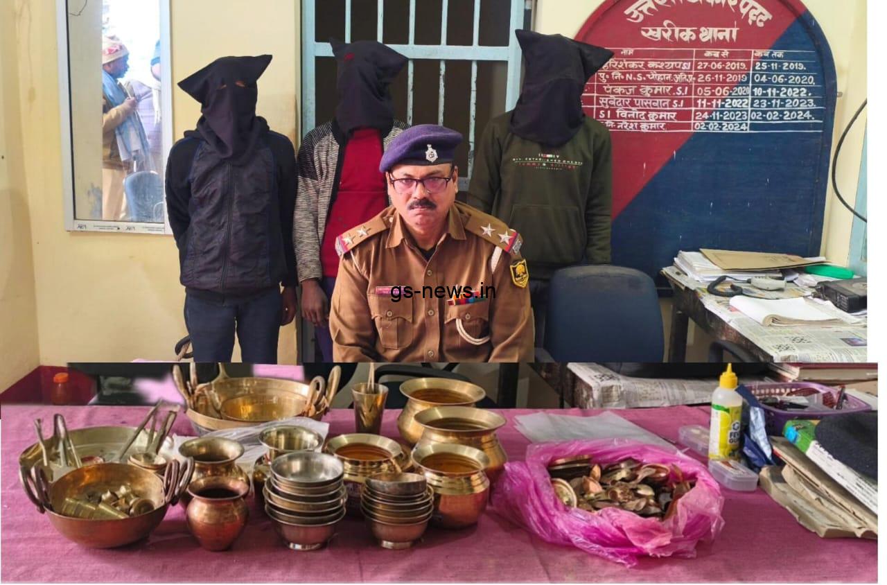 पुलिस जांच में चोरी के सामान के साथ आरोपितों—अंकेश कुमार, साजन कुमार और सौरभ कुमार (पश्चिमी घरारी, खरीक थाना क्षेत्र) को गिरफ्तार किया गया। इसके अलावा एक विधि-विरुद्ध बालक को भी पकड़ लिया गया।