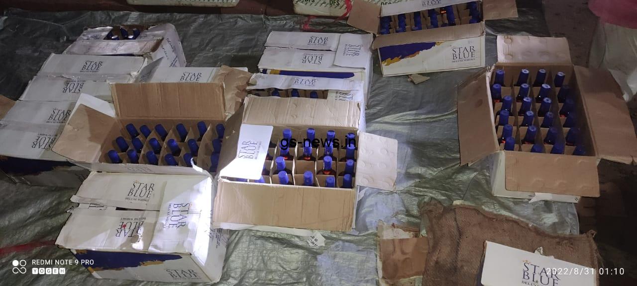 जप्त बोलेरो पिक-अप (रजिस्ट्रेशन नं – JH 10CK 5775) का तलाशी लिया तो थर्मोकोल के बॉक्स में छुपाया हुआ स्टार ब्लू-375 ml का 708 बोतल, स्टार ब्लू- 180ml का 854 बोतल, कुल बोतल – 1562, कुल मात्रा – 419.220 लीटर बरामद किया गया, जिसे विधिवत जब्ती सूची बनाकर जब्त कर गोपालपुर, थाना कांड सं0-437 / 22, दिनांक 30.08.22 धारा-30 (ए) बिहार मद्य-निषेध एवं उत्पाद अधिनियम-2018 के अन्तर्गत दर्ज कर अनुसंधान जारी है. शराब तस्करों को चिन्हित कर गिरफ्तारी हेतु छापेमारी किया जा रहा है.