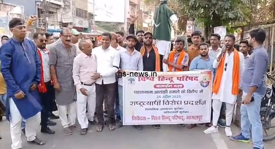 भागलपुर। जम्मू-कश्मीर के पहलगाम में हुए जिहादी आतंकी हमले के विरोध में शनिवार को भागलपुर की सड़कों पर जनआक्रोश उमड़ पड़ा। विश्व हिंदू परिषद और बजरंग दल के बैनर तले सैकड़ों कार्यकर्ताओं ने पाकिस्तान के खिलाफ जोरदार प्रदर्शन किया और आक्रोश मार्च निकाला। यह मार्च भामाशाह चौक से शुरू होकर घंटाघर चौक तक पहुंचा।