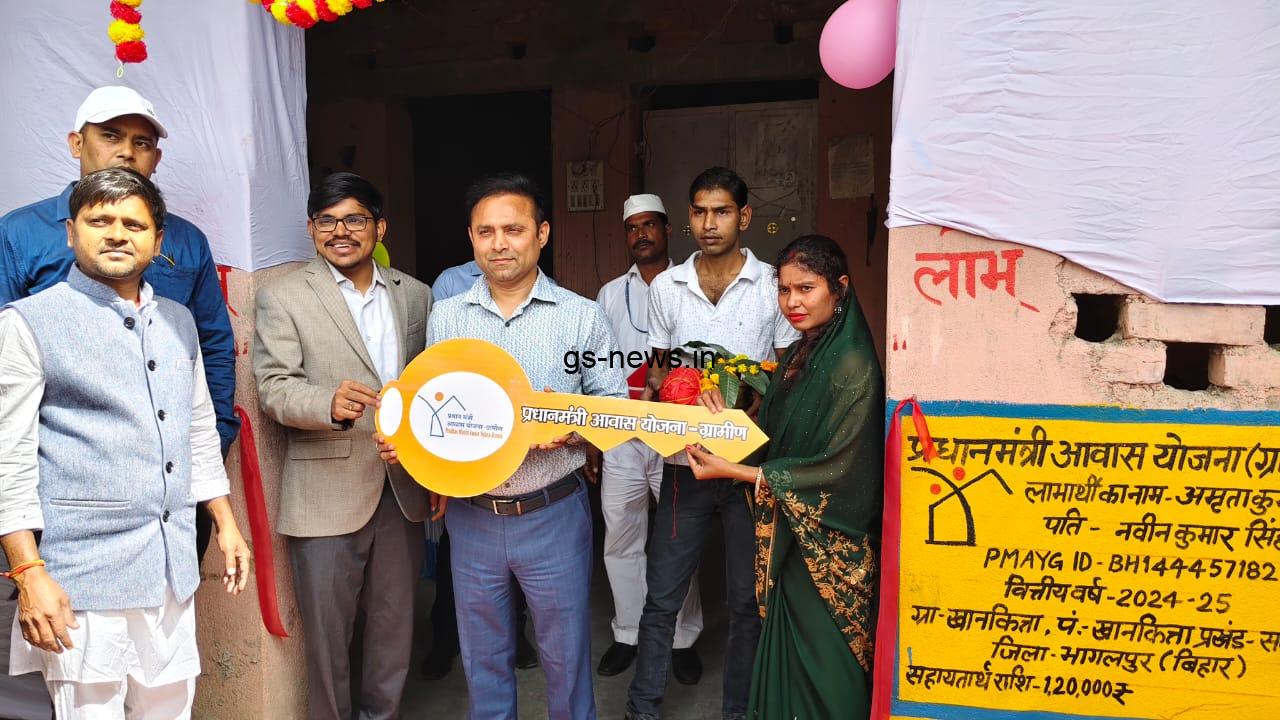 भागलपुर। जिले में प्रधानमंत्री आवास योजना ग्रामीण के तहत वित्तीय वर्ष 2024-25 के अंतर्गत प्राप्त लक्ष्य के अनुरूप अमृता देवी, पंचायत खानकित्ता, प्रखंड सबौर द्वारा आवास निर्माण कार्य पूर्ण कर लिया गया है। बुधवार को भागलपुर जिलाधिकारी डॉ. नवल किशोर चौधरी एवं उप विकास आयुक्त प्रदीप कुमार सिंह ने लाभार्थी को चाबी हस्तांतरित कर गृह प्रवेश कराया। नए घर में प्रवेश करते समय लाभार्थी अत्यधिक खुश और उत्साहित थे। इस अवसर पर कई ग्रामीण, समाजसेवी और प्रबुद्धजन उपस्थित थे।