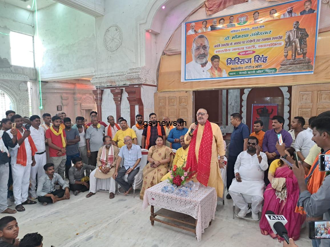 डॉ भीमराव अंबेडकर जयंती समारोह में आयोजित संगोष्ठी सह सम्मान समारोह में तेलघी पहुंचे गिरीराज सिंह