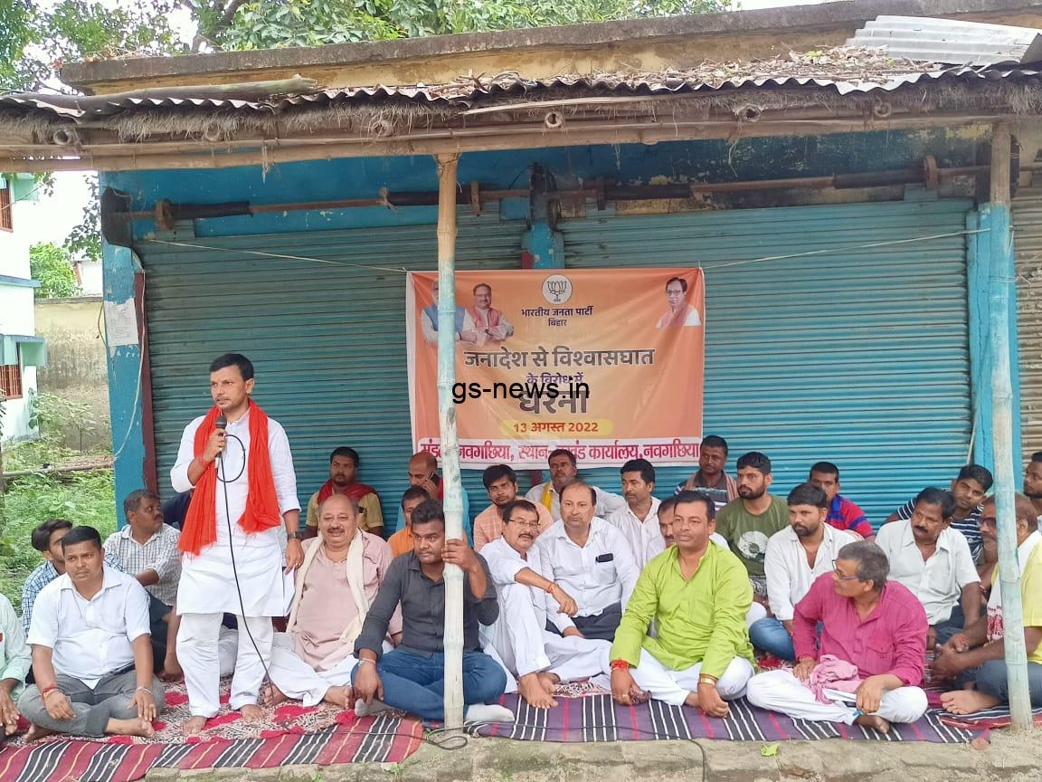 नवगछिया – भारतीय जनता पार्टी नवगछिया जिला अंतर्गत नवगछिया मंडल के द्वारा जनादेश से विश्वासघात के विरोध में धरना प्रदर्शन प्रखंड कार्यालय नवगछिया परिसर में प्रखंड अध्यक्ष बबलू चौधरी के नेतृत्व में की गई। जिसमें मुख्य रूप से भारतीय जनता पार्टी के जिला अध्यक्ष विनोद कुमार मंडल ,पूर्व सांसद अनिल कुमार यादव नवगछिया प्रभारी अभय वर्मा जिला उपाध्यक्ष अजय सिंह कुशवाहा ,जिला महामंत्री आलोक सिंह जिला उपाध्यक्ष अजीत सिंह,