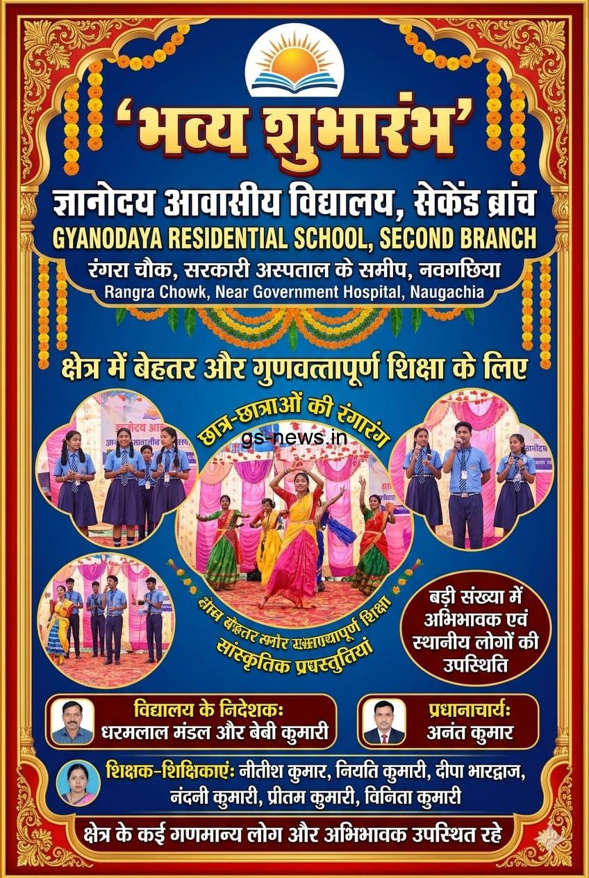 नवगछिया अनुमंडल के रंगरा चौक स्थित सरकारी अस्पताल के समीप ज्ञानोदय आवासीय विद्यालय के सेकेंड ब्रांच का भव्य शुभारंभ किया गया। इस अवसर पर आयोजित कार्यक्रम में छात्र-छात्राओं ने रंगारंग सांस्कृतिक प्रस्तुतियां देकर उपस्थित लोगों का मन मोह लिया।