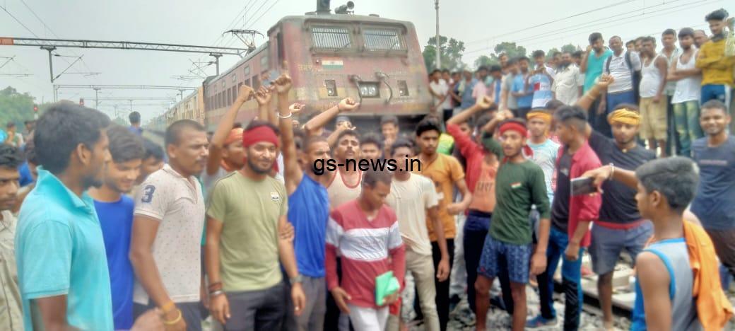 करीब 5घंटे ट्रेन के सामने किया नारेबाजी