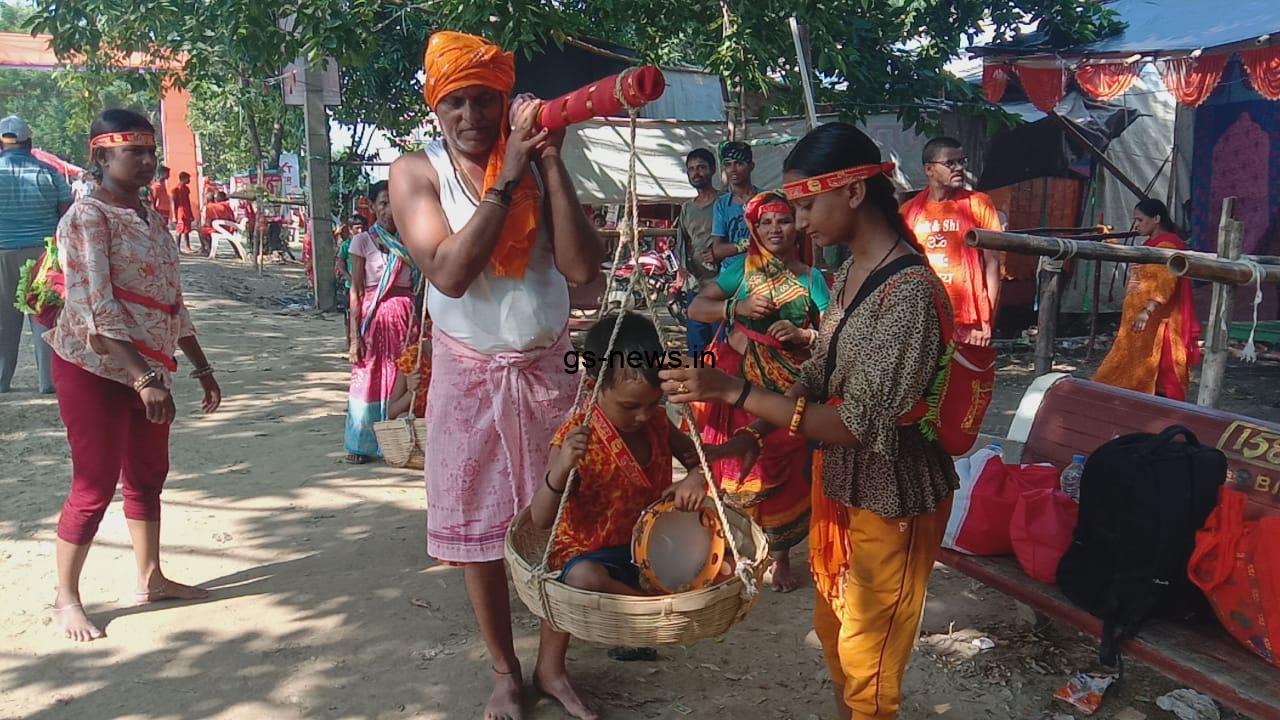 शिव भक्तों कांवड़ियों का मनोकामना पूर्ण होने पर अपने पुत्र पुत्री को कांवड़ में बैठा कर चले बाबा भोलेनाथ को जलाभिषेक करने, बताते चलें कि मुंगेर जिला के खडकपुर टेटिया बंबर के मिल्की गंगटा निवासी दयाशंकर सिंह ने बताया 10 साल पूर्व अजगैबीनाथ धाम उत्तरवाहिनी गंगा घाट से जल लेकर बाबा बैजनाथ धाम में पुत्र के लिए मन्नत मांगे थे। बाबा भोलेनाथ मेरे मनोकामनाएं पूर्ण होने से हम सभी परिवार, सहित एक पुत्र और एक पुत्री को कांवड़उउ में बैठा बाबा भोलेनाथ बैधनाथ धाम पैदल यात्रा कर बाबा भोलेनाथ को जल चढाएंगे।