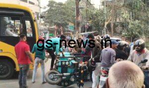 भागलपुर कचहरी चौक पर स्कूली वाहन ने टोटो को मारी टक्कर, चालक वाहन लेकर फरार ||GS NEWS