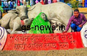 कृषि मेला में सैंड आर्टिस्ट मधुरेंद्र ने रेत पर उकेरी गौ माता की तस्वीर ||GS NEWS
