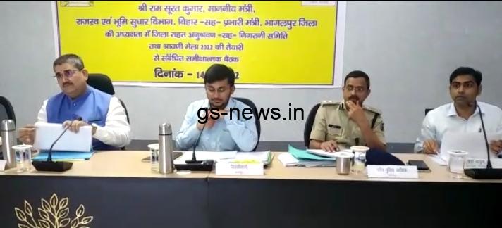 सम्भावित बाढ़ के खतरे से निपटने और विश्व प्रसिद्ध श्रावणी मेले को लेकर बिहार सरकार ने तैयारियां शुरू कर दी है। इसी कड़ी में भागलपुर जिला प्रभारी मंत्री सह बिहार सरकार के भूमि एवं राजस्व मंत्री रामसूरत राय की अध्यक्षता में भागलपुर के समीक्षा भवन में बाढ़ से पूर्व इसकी तैयारियों और 2 वर्ष बाद आयोजित किए जाने वाले श्रावणी मेले को लेकर बैठक आयोजित की गई। बैठक के दौरान जिला प्रशासन के द्वारा प्रोजेक्टर के माध्यम से बाढ़ सम्भावित अंचलों व पंचायतों की पूरी जानकारी को मंत्री को दी गयी।
